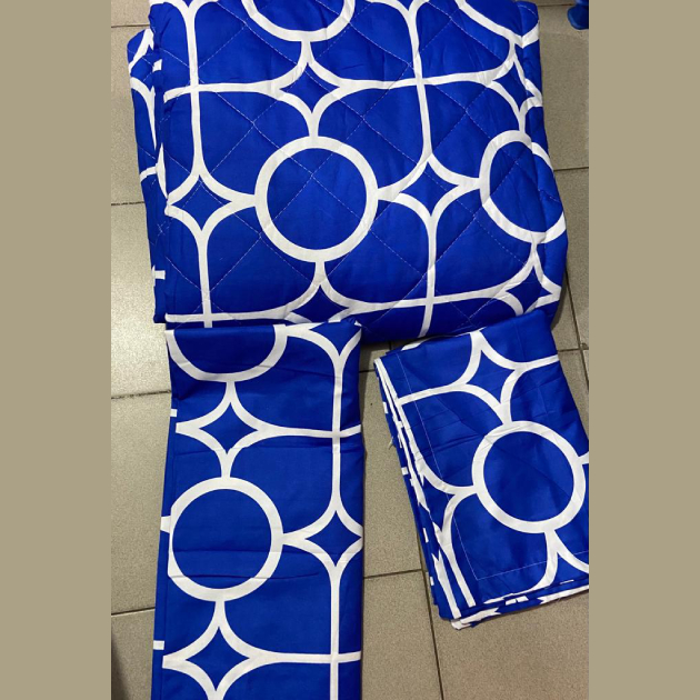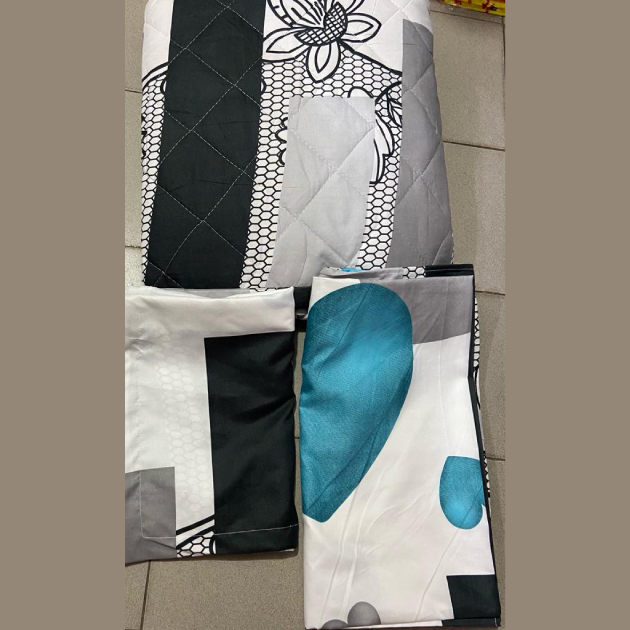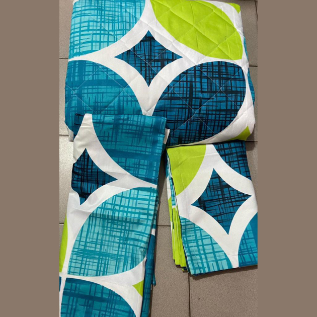 Ensemble couverture lourde + 2 draps de lits motif abstrait bleu/vert