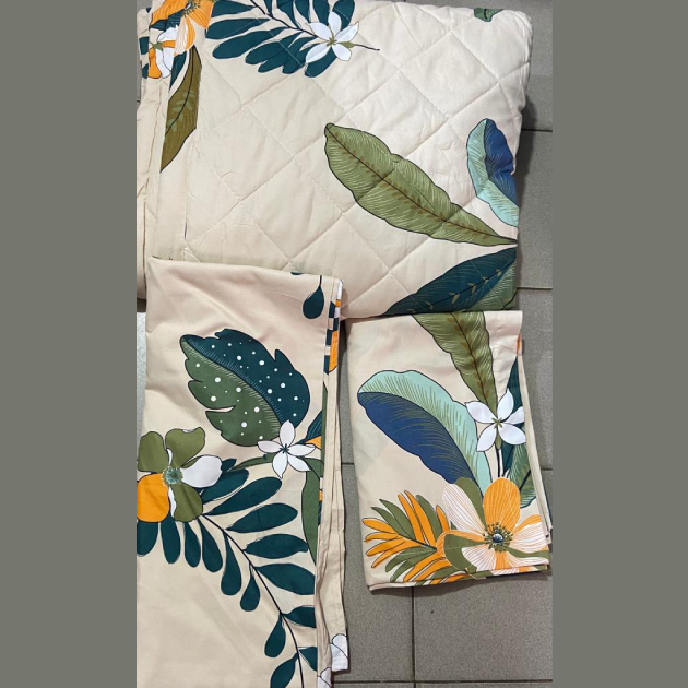 Ensemble couverture lourde + 2 draps de lits motif fleuri beige