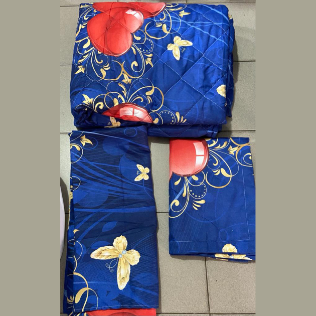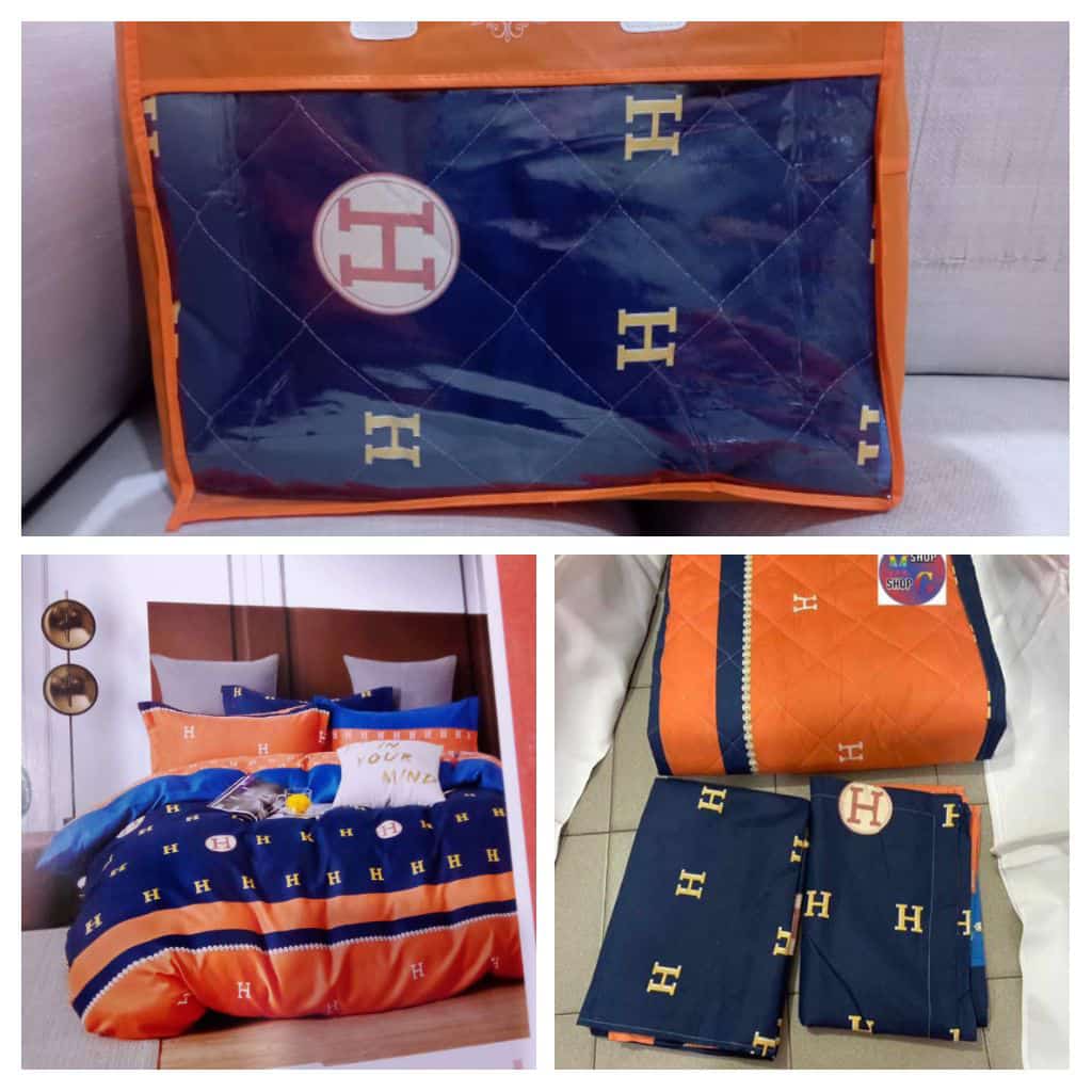 Ensemble couverture lourde + 2 draps de lits bleu/orange