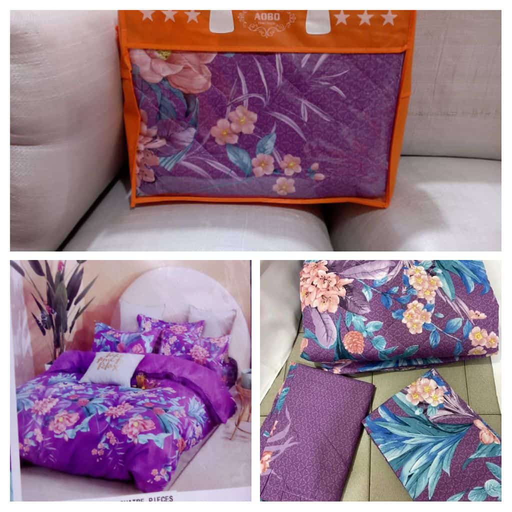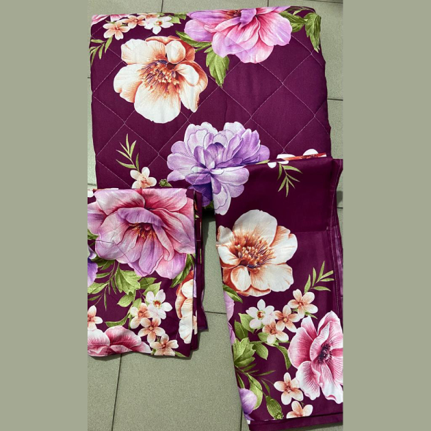 Ensemble couverture lourde + 2 draps de lits motif fleuri violet