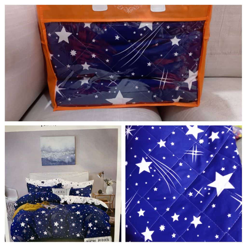 Ensemble couverture lourde + 2 draps de lits motif étoiles bleu