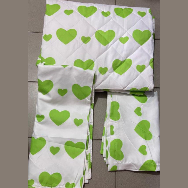 Ensemble couverture lourde + 2 draps de lits motif coeur vert