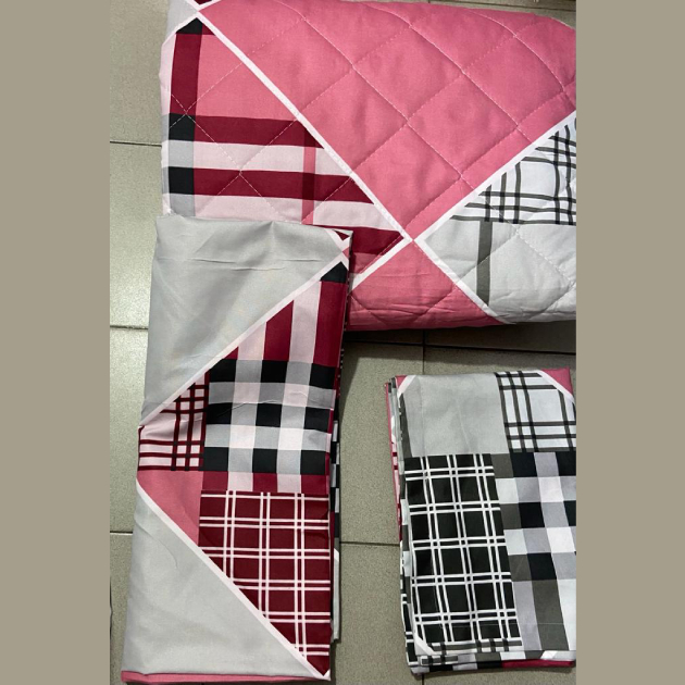 Ensemble couverture lourde + 2 draps de lits motif géométirque rose/gris/noir