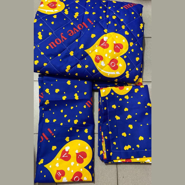 Ensemble couverture lourde + 2 draps de lits "i love you" jaune/bleu
