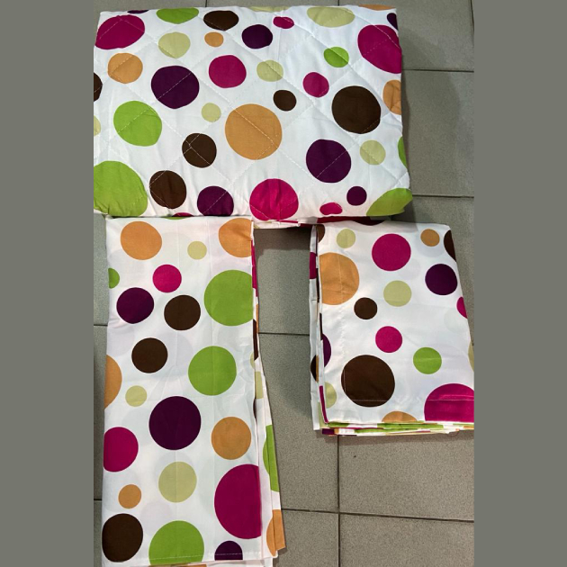 Ensemble couverture lourde + 2 draps de lits motif ronds multicolores
